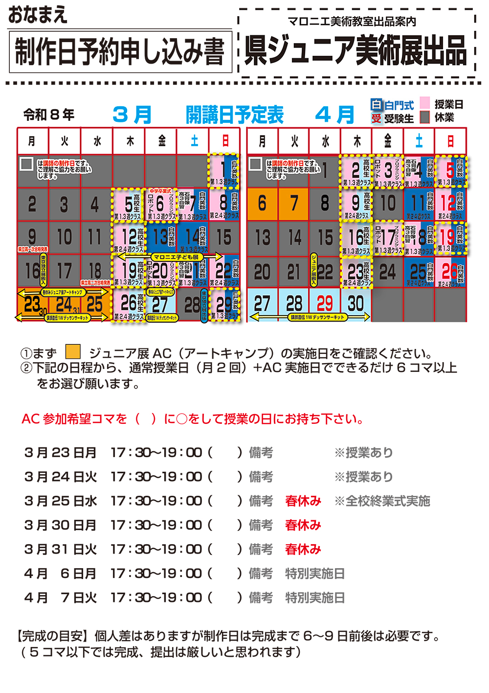 ⭕️制作日は最低でも授業日+アートキャンプで6コマは必要です。