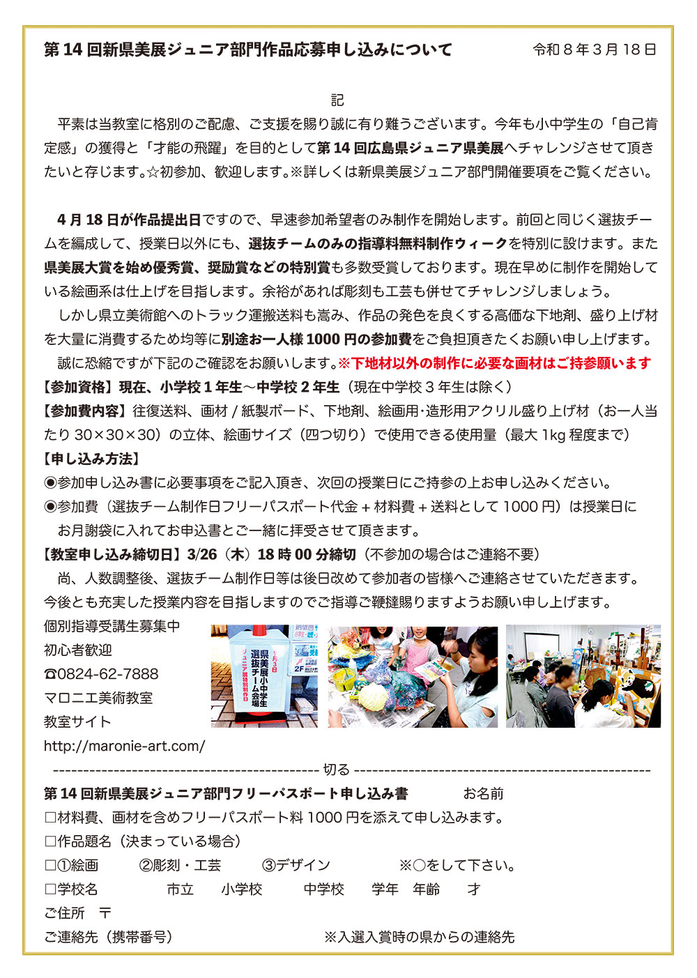 【3/18広島県発表による第13回 広島新県美展ジュニア部門要項】