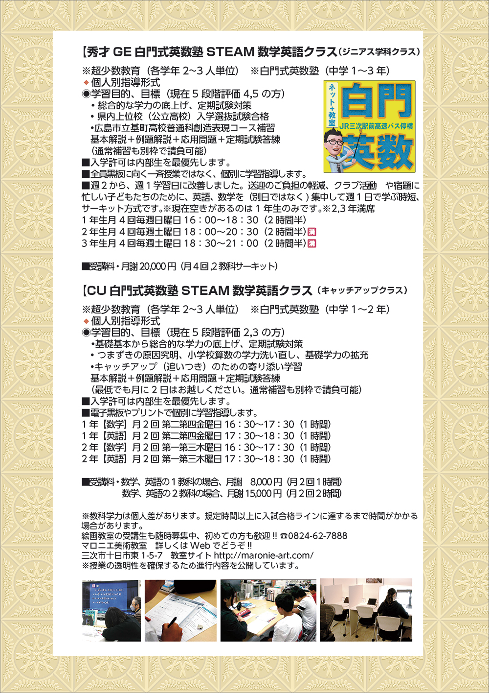 ※白門式英数塾(中学1〜2年) 個人別指導形式