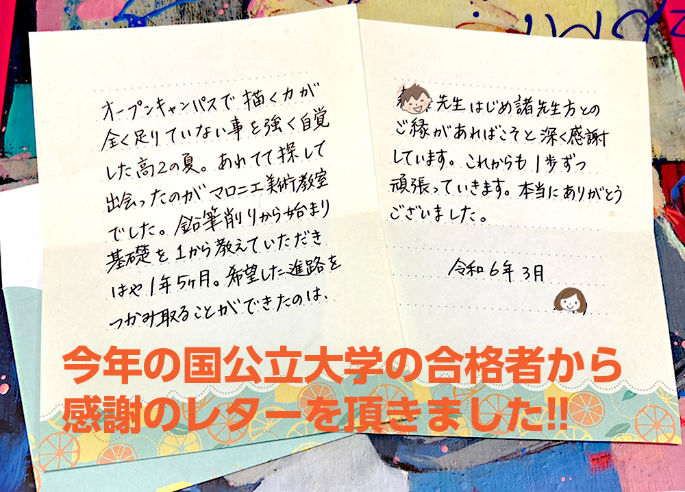 通信制高校へ通学し、卒業後美術系短大に合格した受講生もおります。