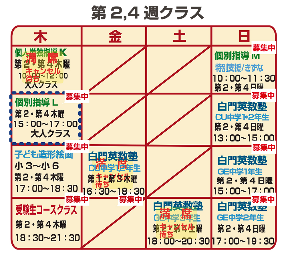 ※現在空きがあるのは1、2年生のみです。※3年満席