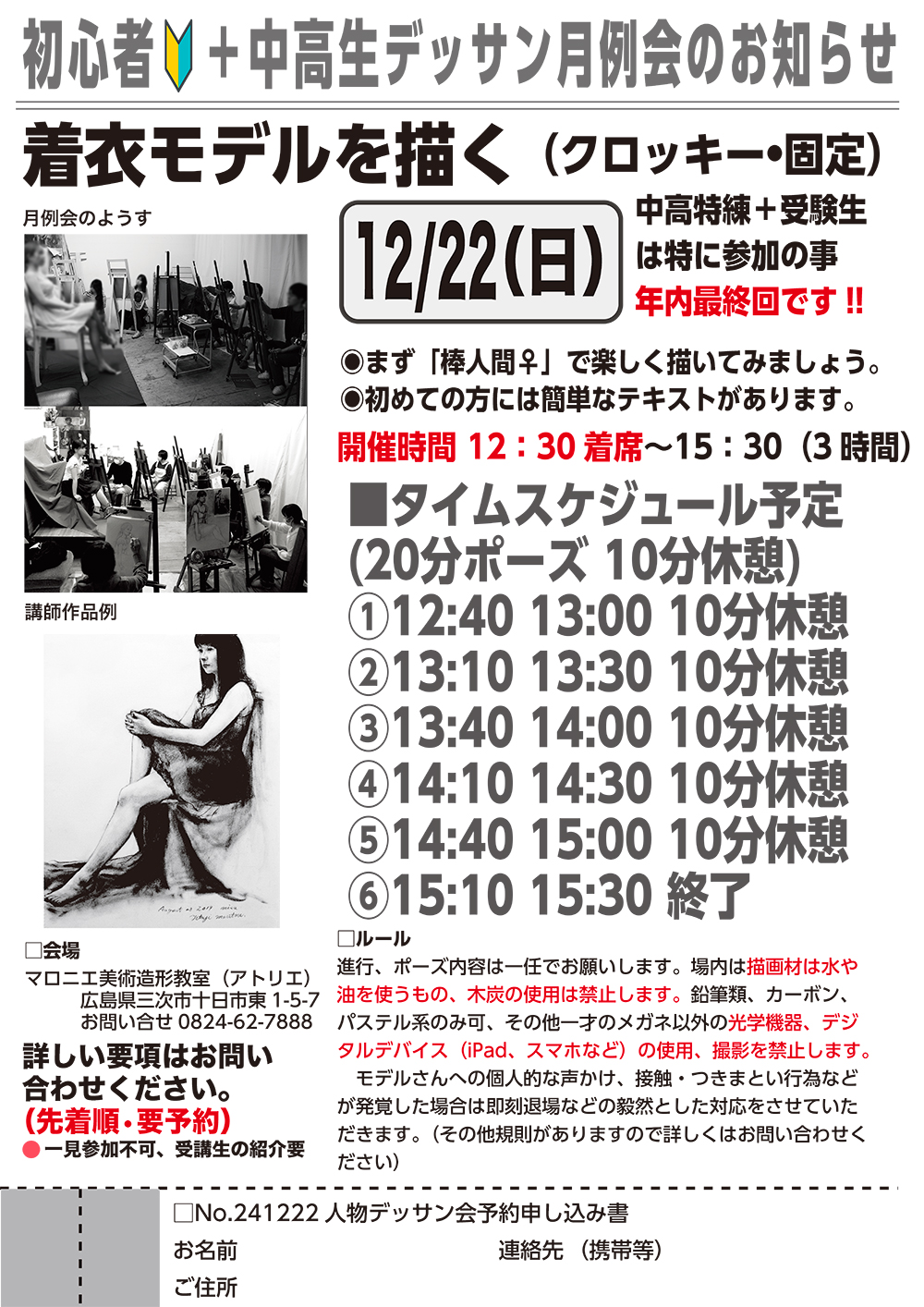 ■受講生、モデルの皆様へ、下記の開講日、デッサン会等の日程確認を